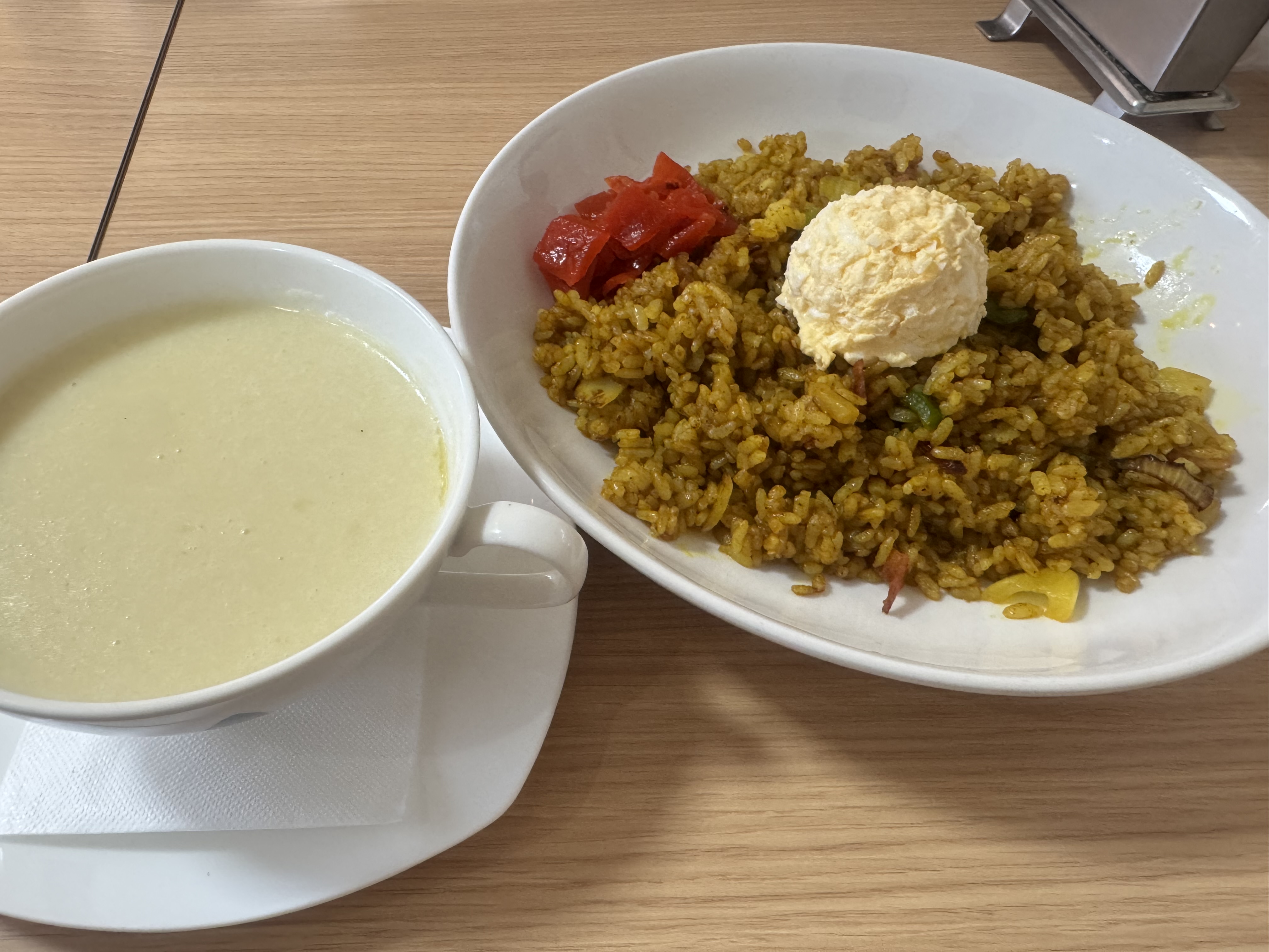 温玉が乗っているのかなと思っていたら、まさかの玉子サラダでびっくりしました!ドライカレーの中のレーズンが良いアクセントになっていて、とてもおいしかったです!