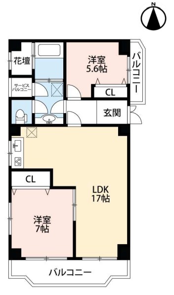 階・間取/7階/7階建・2DK