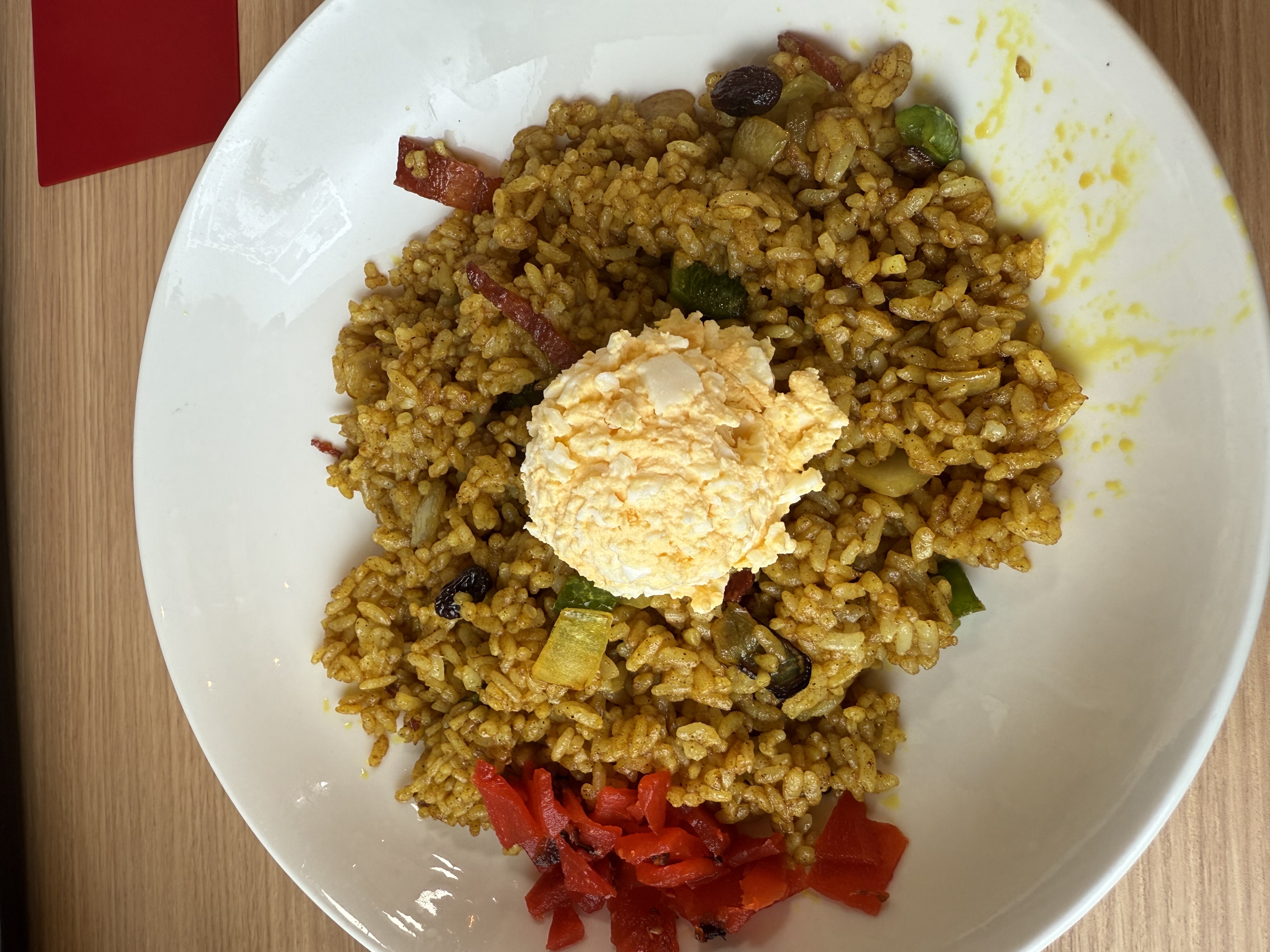 温玉が乗っているのかなと思っていたら、まさかの玉子サラダでびっくりしました!ドライカレーの中のレーズンが良いアクセントになっていて、とてもおいしかったです!
